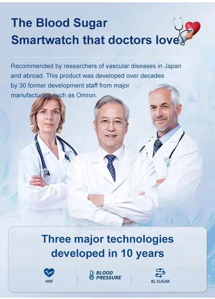 Monitoring heart rate/bloodglucose Bluetooth watch